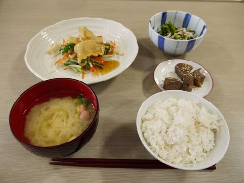 メンズヘルシークッキングで、昼飯を作りました。 本日の献立は、もやしと鶏の黒酢あんかけ春菊の辛し和えこんにゃくの炒り煮玉ねぎととろろ昆布のみそ汁 黒酢を利かせたあんかけで野菜も鶏肉もさっぱりと食べられます。前回に比べて、ボリュームもカロリー…