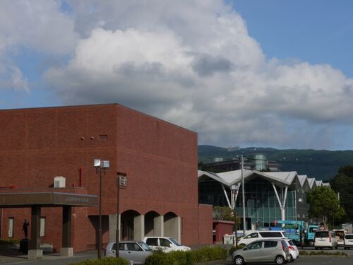 朝、おもわせぶりな雨があったが、すぐに元の夏空に。それでも夕方は、雲が出てきて暑さも和らいだのかな? 完成間近の図書館 三兄弟(公民館・図書館・役所)の構図 もう少し高い位置から撮りたいが・・・東壁の大窓に映る箱根 月夜 月にまとわりつく雲月を…