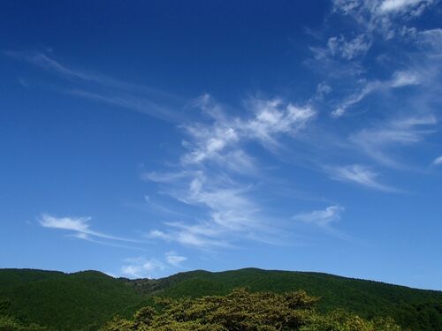 台風が通り過ぎて、雲一つない秋空で朝が始まりました。 原生の森の快適な環境の中で、台風の落とし物の大量の落ち葉や落ち枝の片づけをしました。この程度の被害でやれやれでした。 夕方近くになると、秋高く巻雲が見えました。 マツムシソウはオシベが先に…