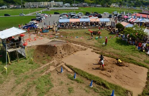 北江間のいちご狩りセンター近くの田んぼで毎年開催されているでろ祭(でろさい)に今年も行ってきました。地元だけではなく遠くからの参加が多く、いよいよ全国区に知れ渡ってきたとの感があります。 地上10m高に登る建機に乗せてもらい、上からでろレー…