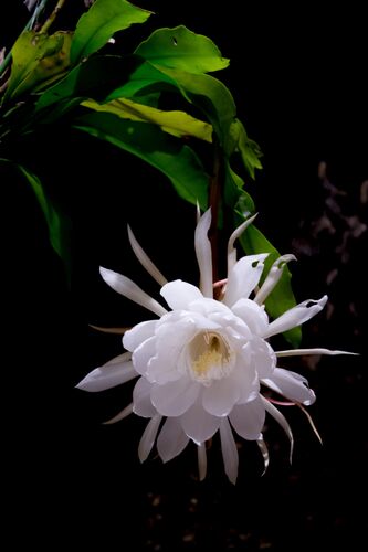 今年も、近所の家で月下美人の花が開いたので、朝には萎む薄い命なので撮影させてもらいました。 あいにくと月は出ていないので、玄関先での撮影ですこれからまだ開くようですが、ここまでで。