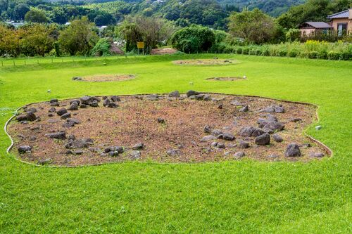 地学会東部支部のジオツアー三島に参加して、秋の中伊豆を歩きました。狭いサイトに大勢の参加者だったために、説明も聞けないし、撮影する余裕は少なかった。今回はウォーキングということで。 大見川の河岸段丘に立地する国指定遺跡の上白岩遺跡 環状の配…