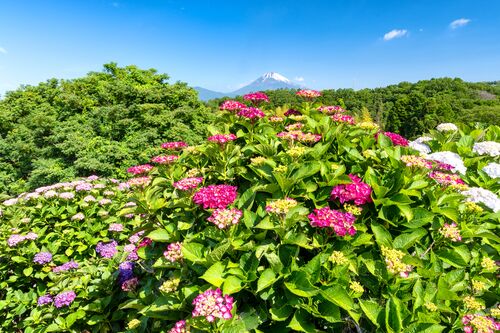 朝方雲に隠れていた富士山が8時過ぎに顔を出したので、すかさず、三ツ谷新田のアジサイロードに出動。(前日に下見していて、アジサイの見ごろを確認していた) 期待通り、梅雨空に隠れるまでの短い時間に、富士山とアジサイを撮ることができた。 アジサイ…