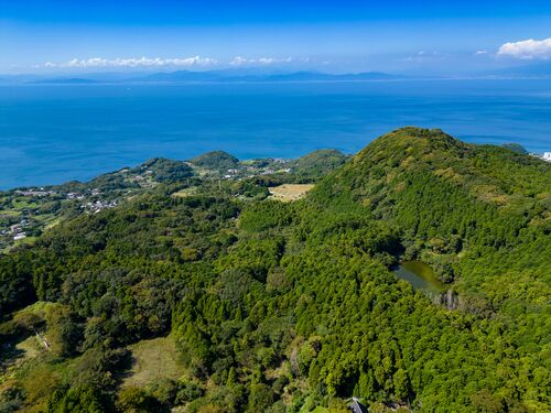 午後から風が弱くなるとの予報を信じて、西海岸の空撮に出かけた。全体的に風は強かったが、飛行には支障が無かった。 小下田・浅間山 小下田の東に尖っている浅間山の山形を空撮してみた。左(西)に見えるのが、下村の集落で、浅間山の下には、小さなため…
