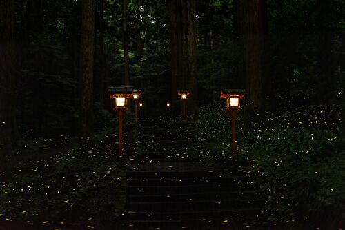 二の岡神社のヒメホタルの情報が入らないので、天気予報からラストチャンスと予測して、出かけた。途中、激しい雨に見舞われて、あきらめ気味だが、ダメモトで、神社に到着。灯りの点った石灯篭を前撮りできる時間帯(夕方6時~7時)には、小雨になったので…