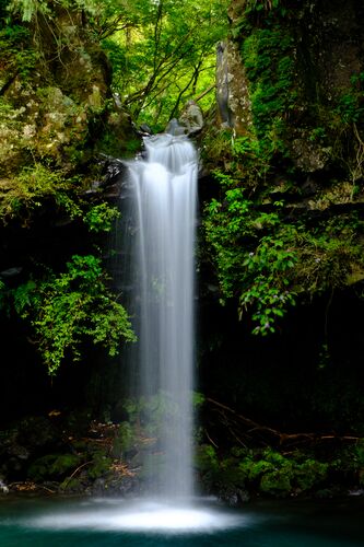 この時期、どこも猛暑で撮影に出かける気にならないが、写真クラブの撮影会で涼しいと思われる朝霧高原で涼を求めた。 猪之頭・陣馬の滝 少雨のせいか、本流の滝の水量は少ない。伏流水はいつもと変わらず、涼し気な白糸を流している。