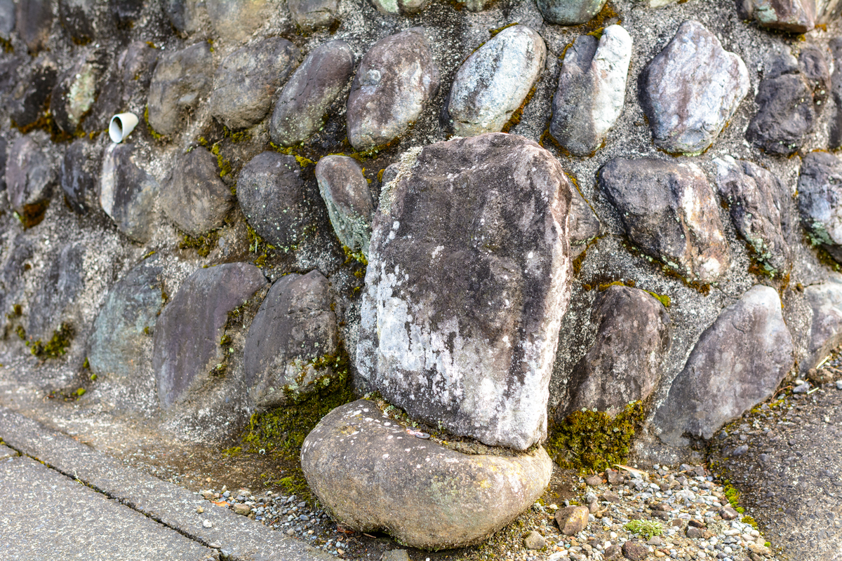 野中 天神村集落への小道・民家の一部を祭場にして、文字碑
