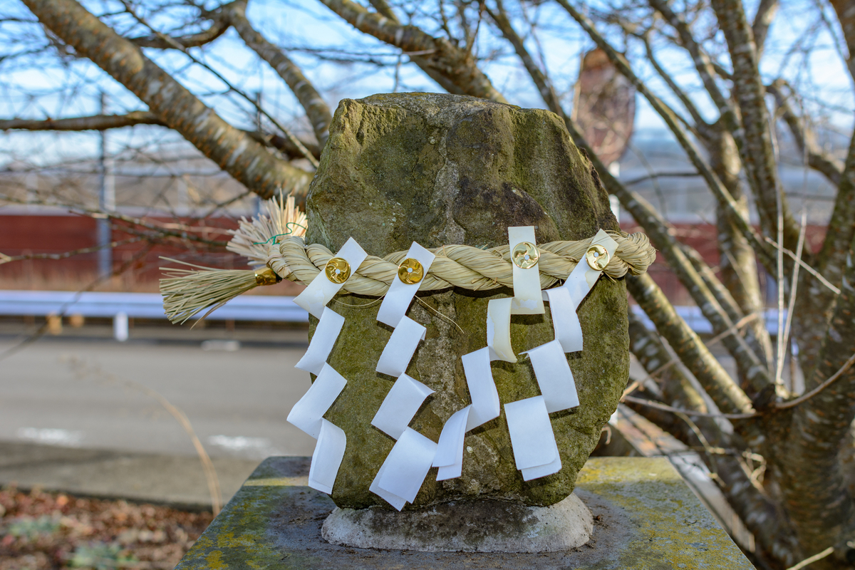西山 原の森山の麓にある造園屋の東南角に、自然石