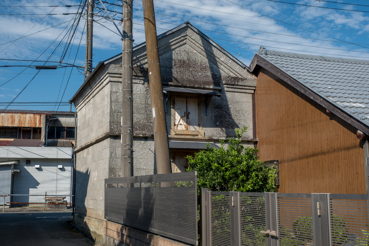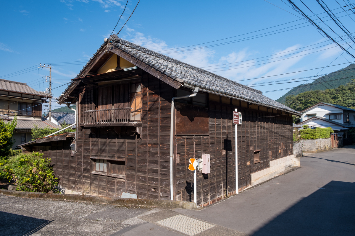 路地奥には、昔ながらの木造の壁の住宅が建つ。