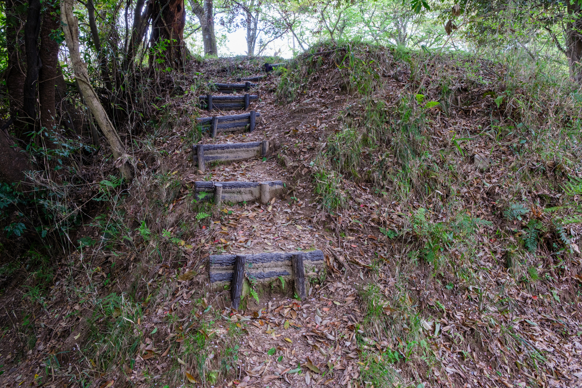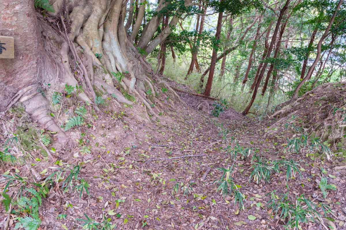 急坂を進むと、愛宕山の分岐が現れ、すぐに尾根筋の山道(大手口?)となる。