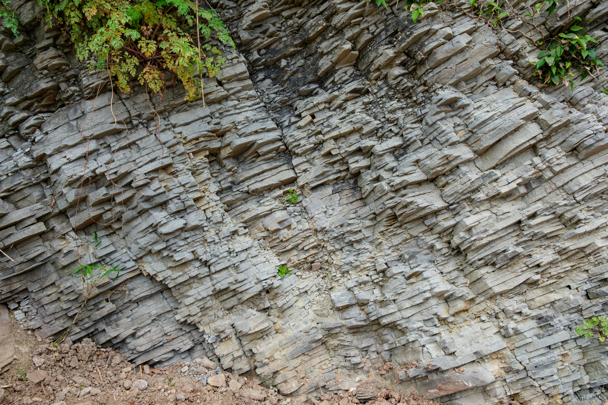 千畳敷に向かう林道を辿ると、白浜層群の