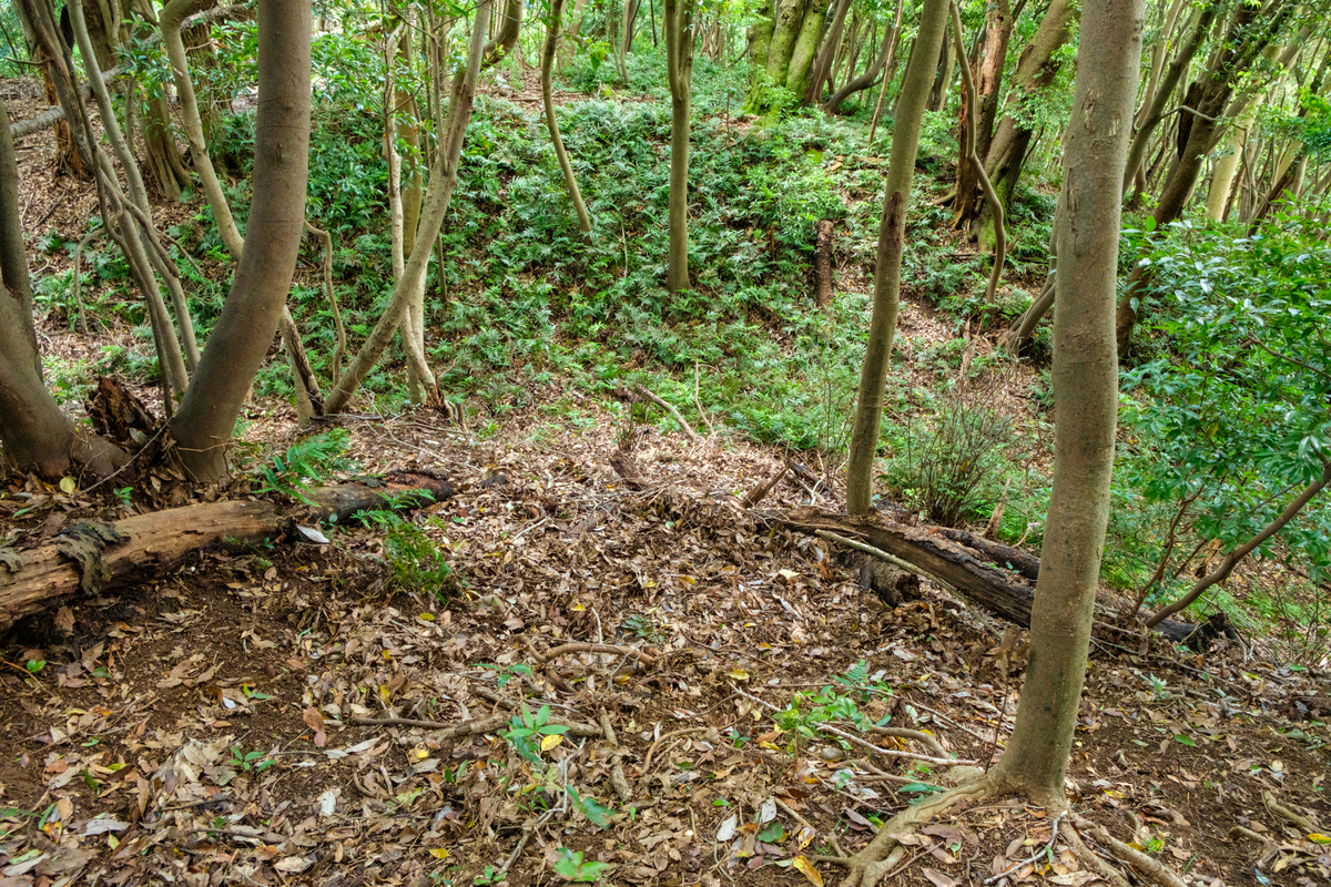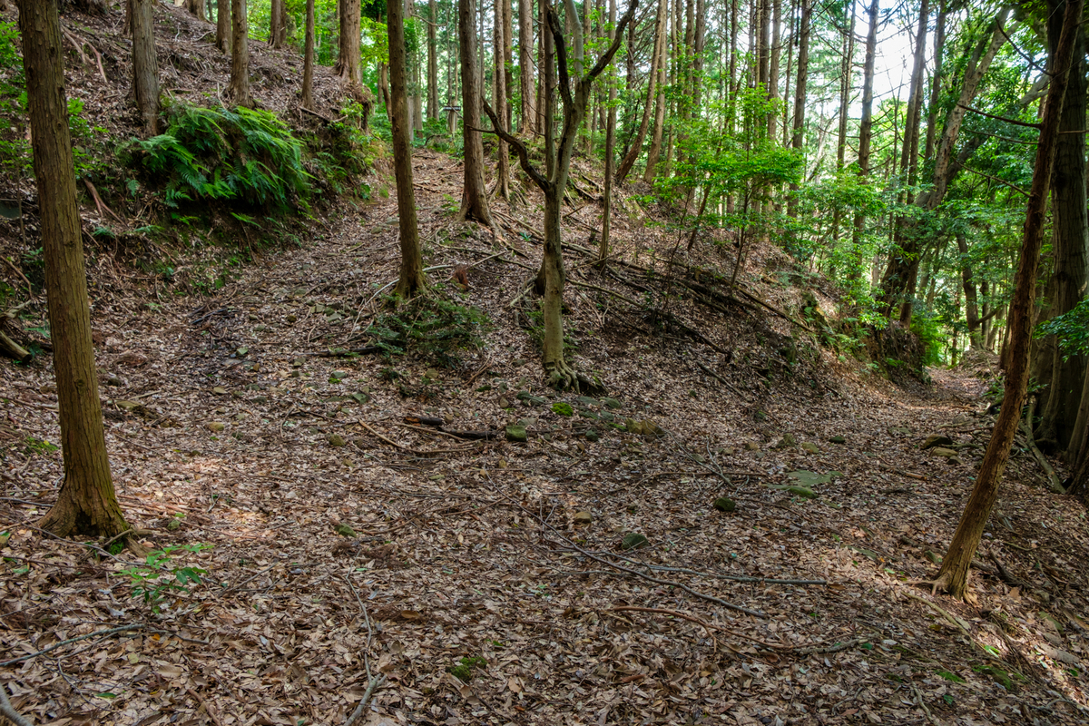 すぐに竪堀-2が稜線を切り、道を屈曲させる。
