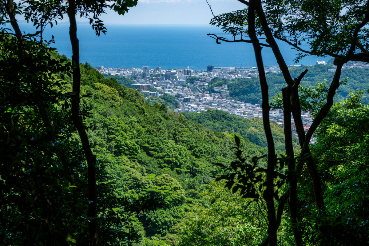 木の隙間から、伊東の街が見えた。唯一ここだけだが。