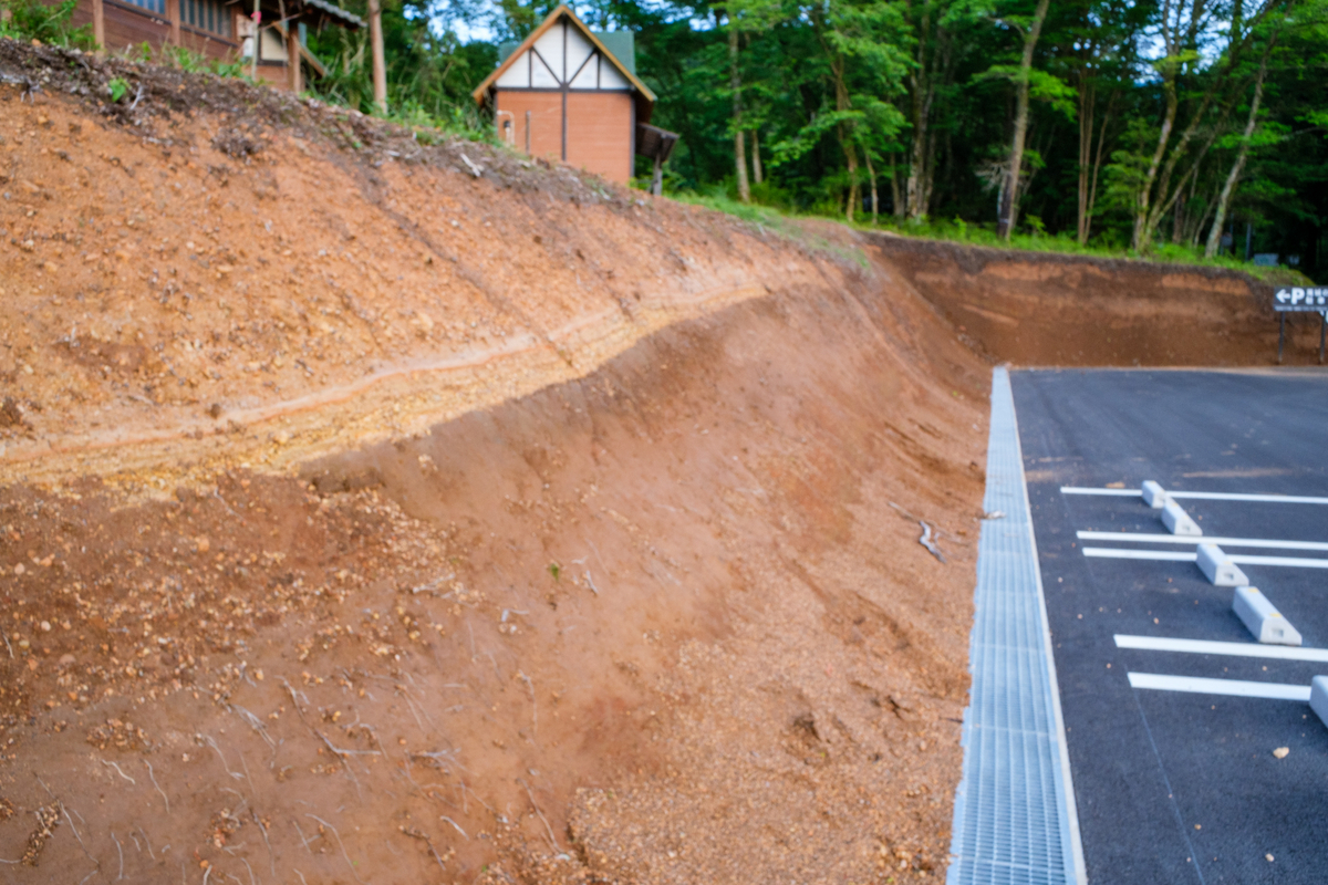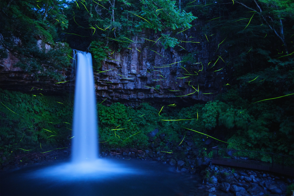 2024-06-10 萬城の滝 ホタル 写真 萬城の滝のホタル撮影に再挑戦した。月あかりが増してくるので、今年最後となる。平日なのでキャンプ客はやって来なかったが、タヌくんがやってきて、しばらくホタル見てから消えた。 中古の単焦点レンズ(17mm/f1.4)を用いて、10ショットを比較明合成 40秒のスローシャッターで1発撮り場所を変えて、1発撮り。真っ暗なので、ノーファインダーでレンズを向けたが撮れていた。 露頭 駐車場が整備されて広くなった。露頭にカワゴ平パミスが白く広がる。