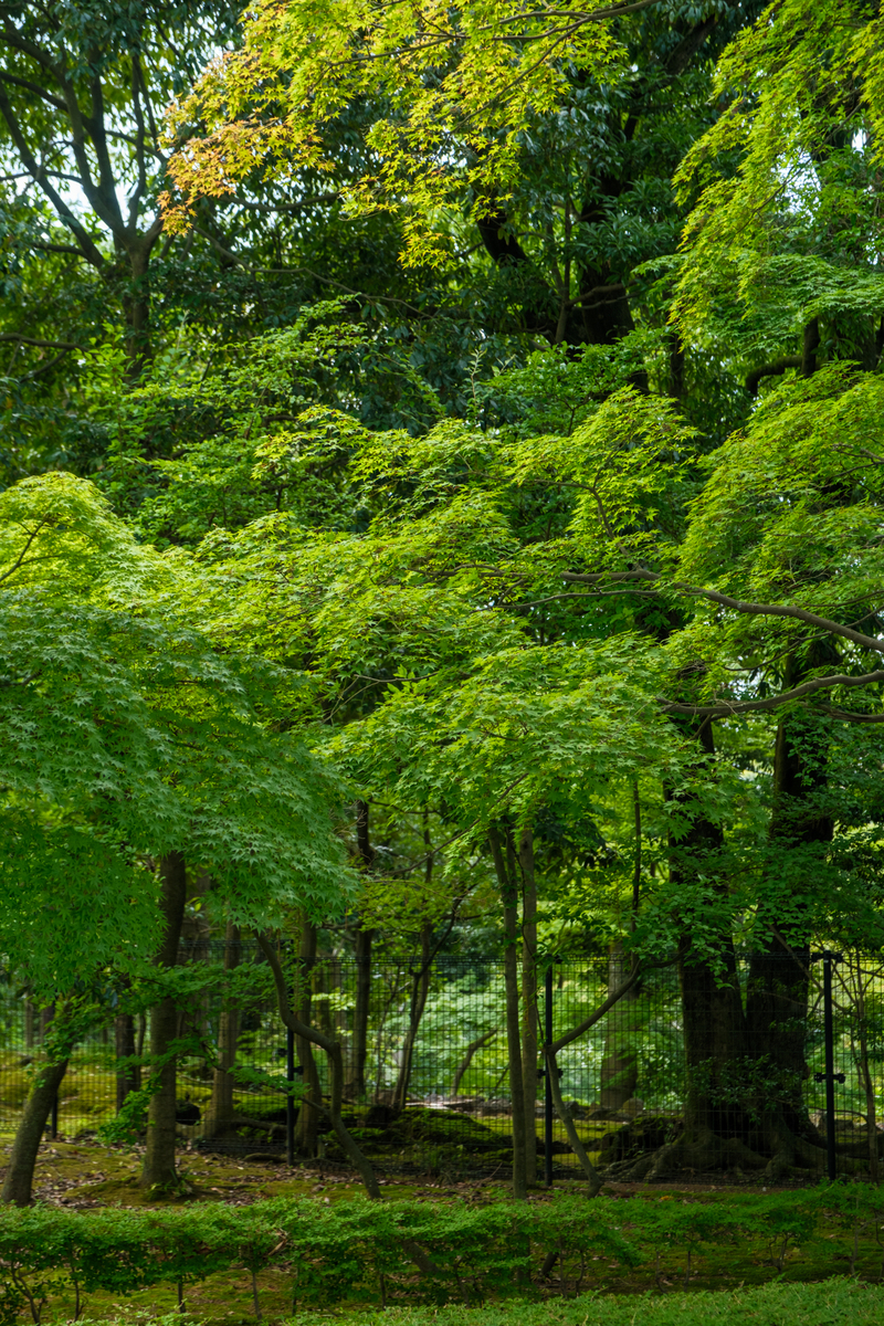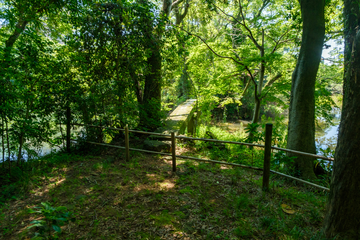 楽寿館の手前から、普段は立ち入りできない常盤の森に入る。