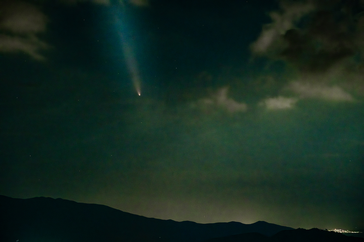 4回目の挑戦で、ようやく紫金山アトラス彗星の撮影ができた。西の空が開けていて、町の灯りが少ない巣雲山山頂からの撮影。